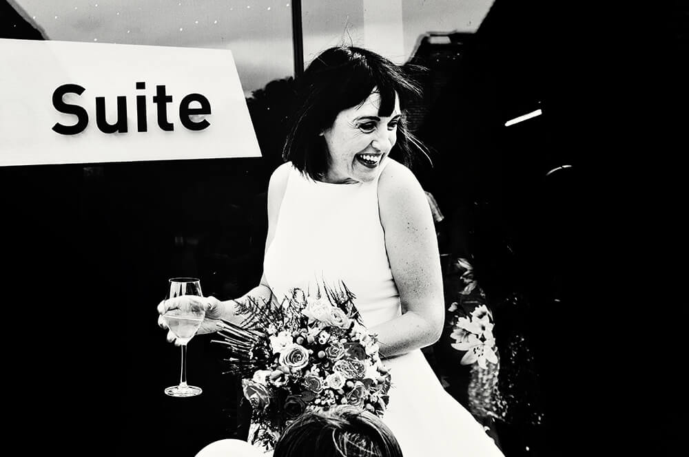 “Stroppy groom opens champagne bottle in front of a concerned photographer!”