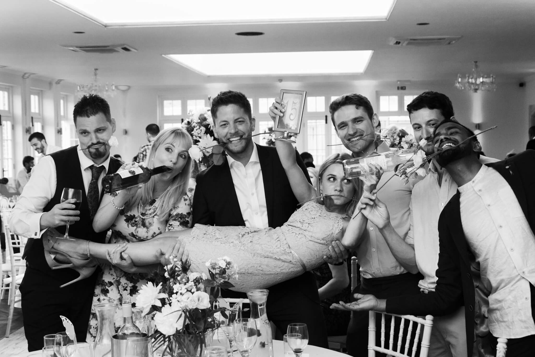 “Stroppy groom opens champagne bottle in front of a concerned photographer!”