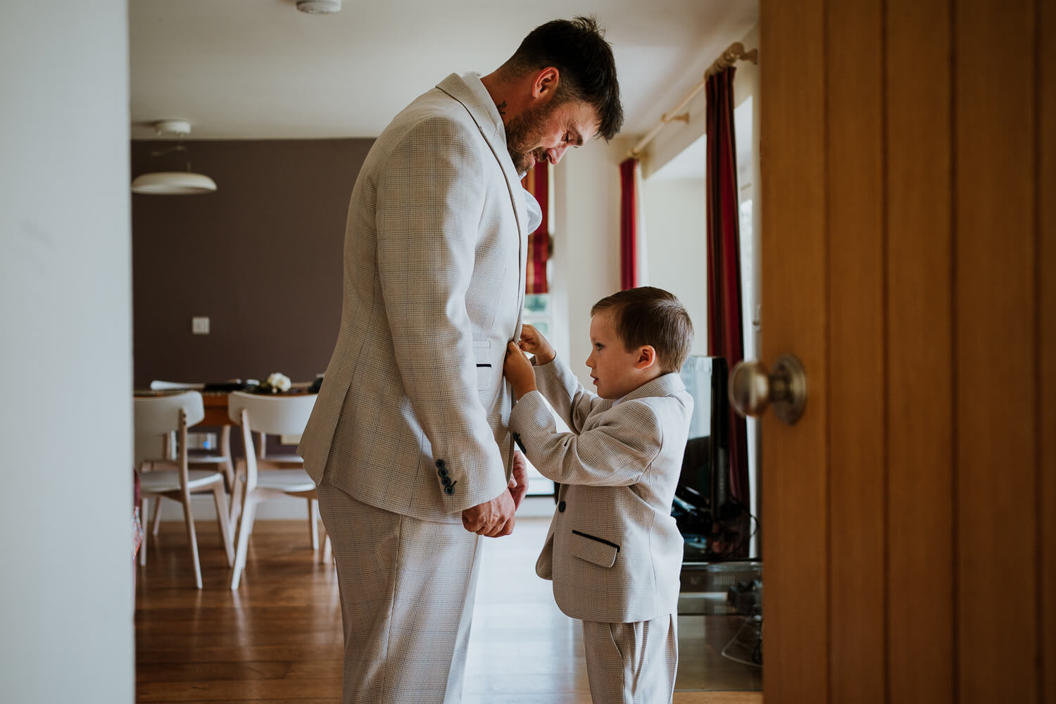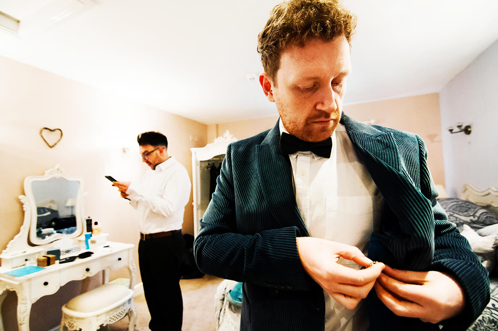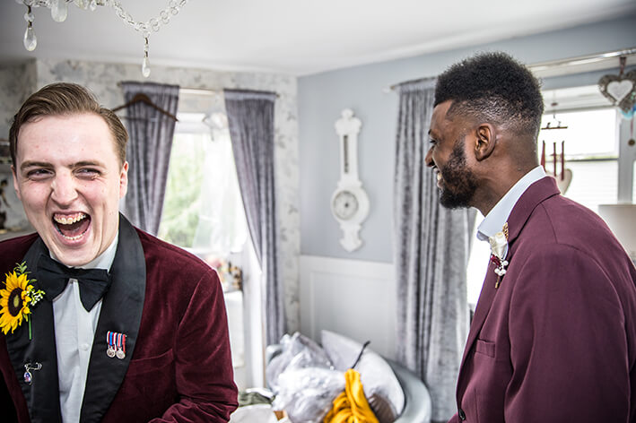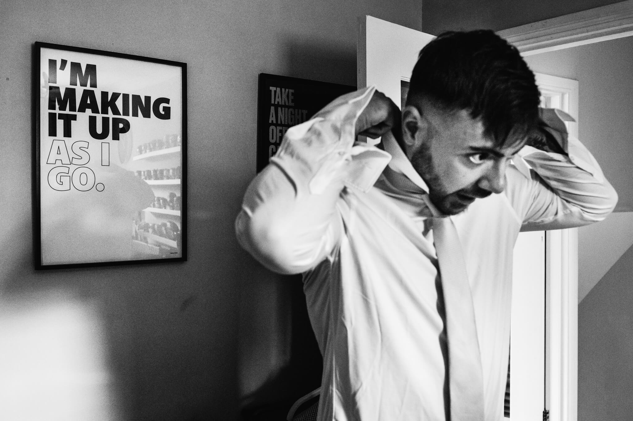 “Harry is a graphic designer and had made this artwork you see on the wall. I wanted to frame it so focus was on the artwork and tied it into Harry getting ready in the morning. It always feels like us chaps are making it up as we go when it comes to getting ready (the ladies have it sussed!) I also feel like I’m making it up as I go whenever I’m shooting a wedding!”
