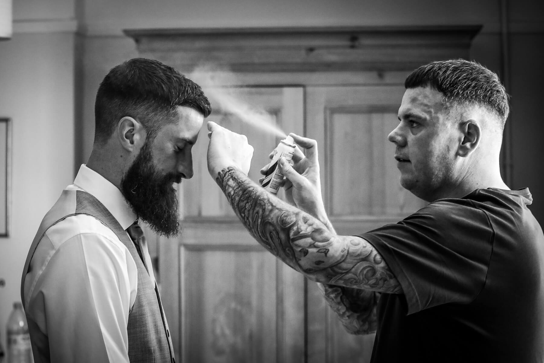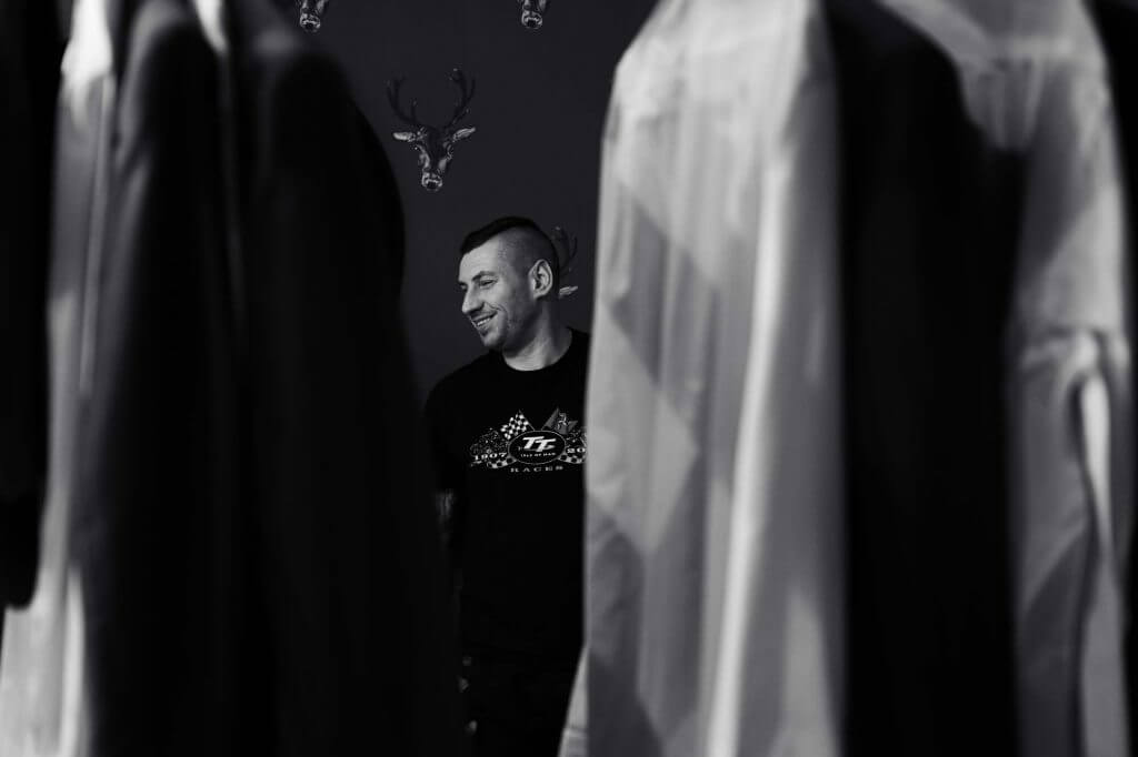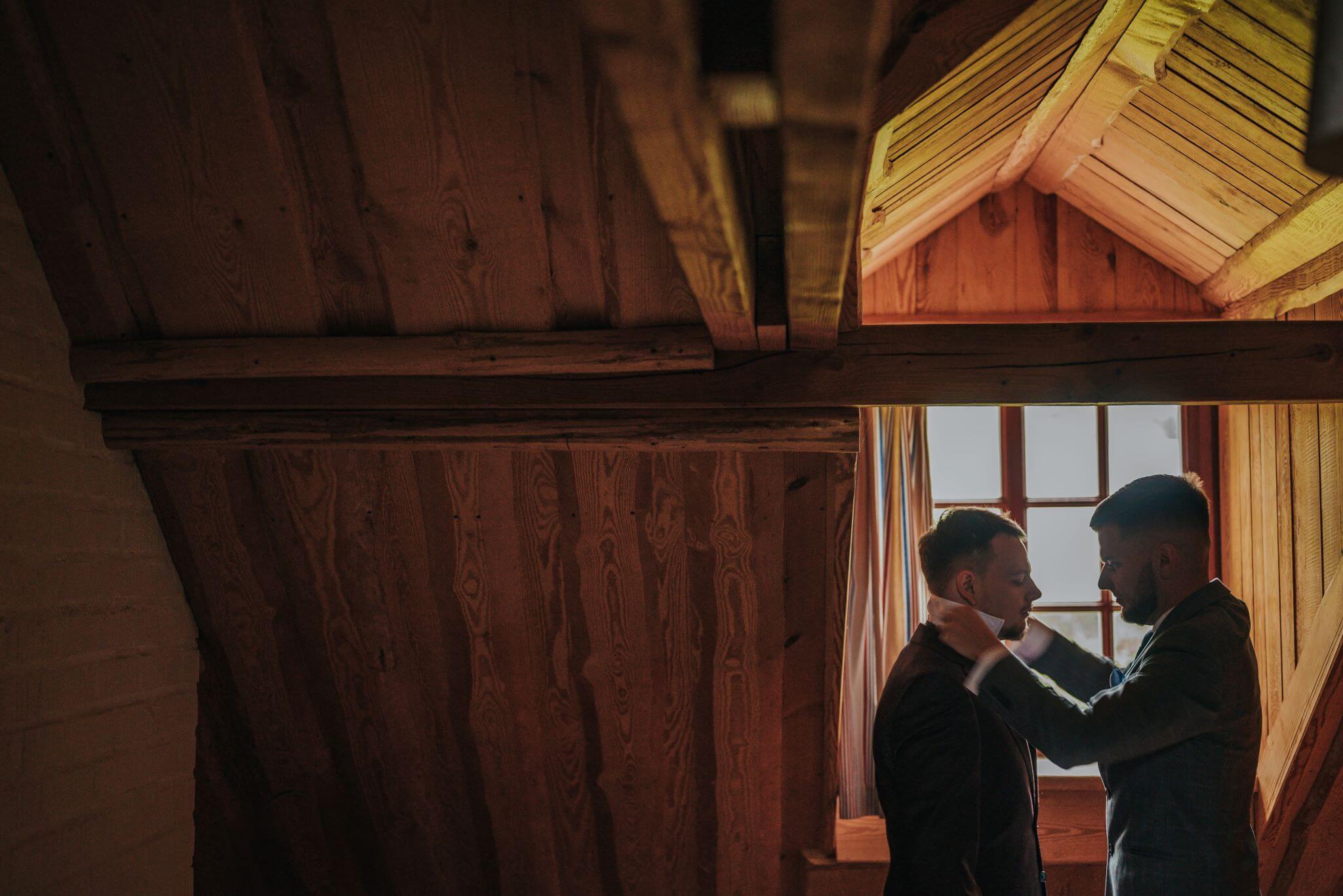 “Harry is a graphic designer and had made this artwork you see on the wall. I wanted to frame it so focus was on the artwork and tied it into Harry getting ready in the morning. It always feels like us chaps are making it up as we go when it comes to getting ready (the ladies have it sussed!) I also feel like I’m making it up as I go whenever I’m shooting a wedding!”