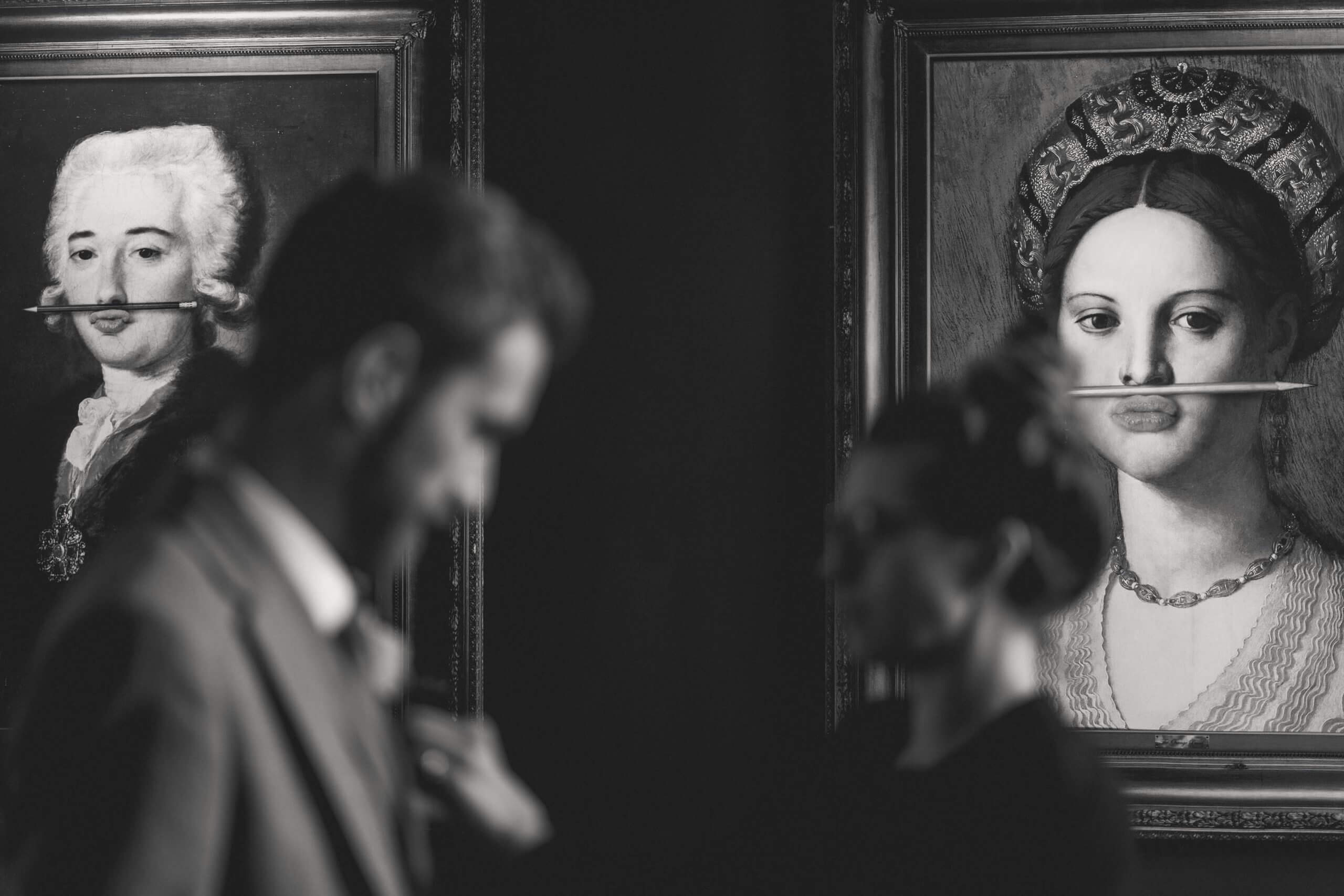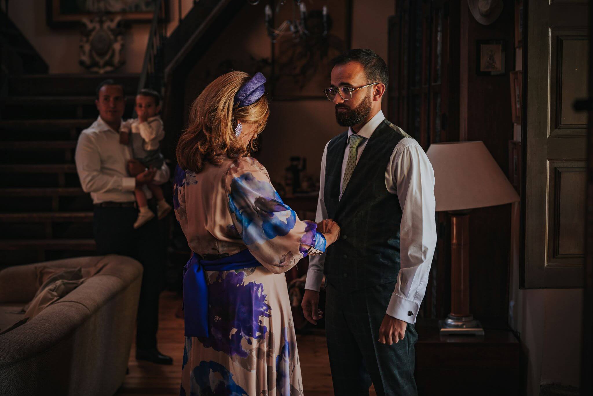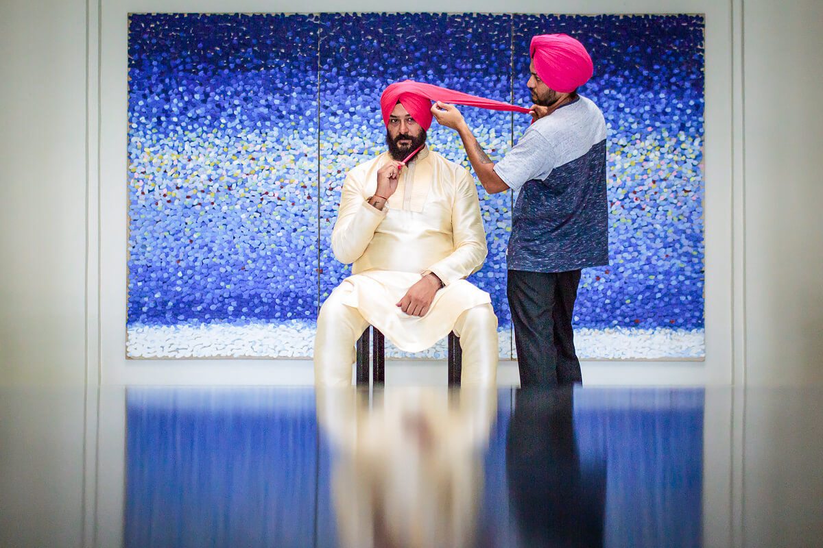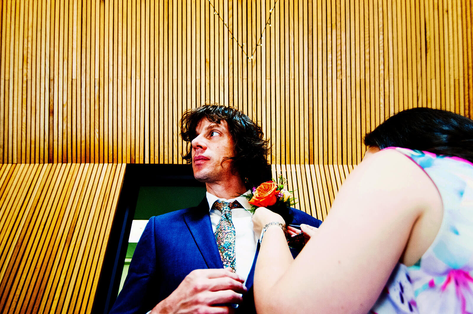 “The groom has his buttonhole attached whilst the artwork watches on!”
