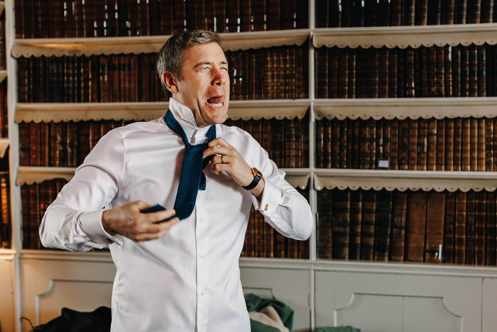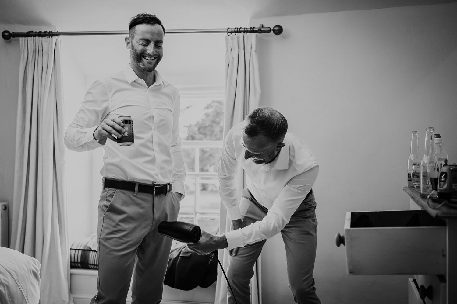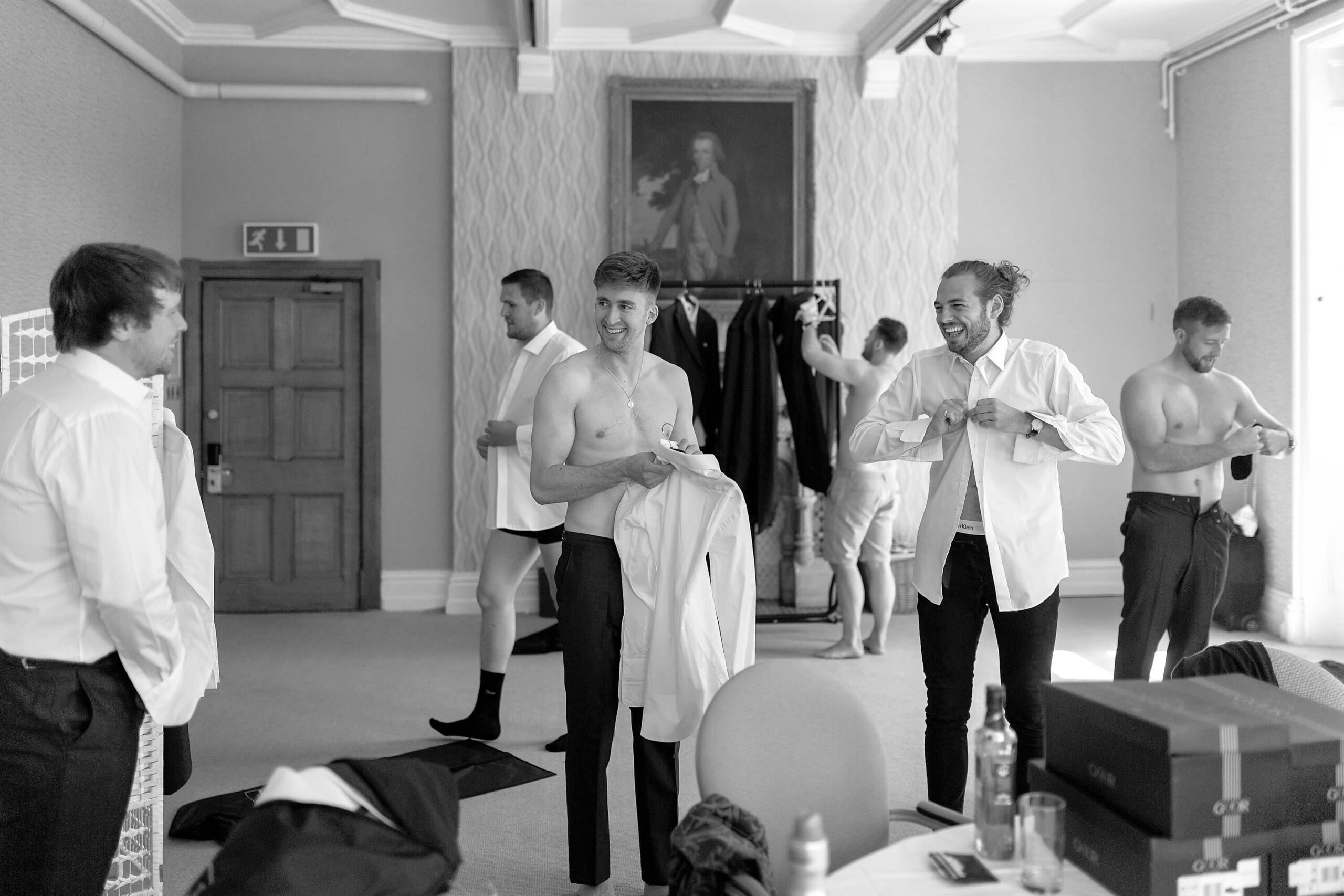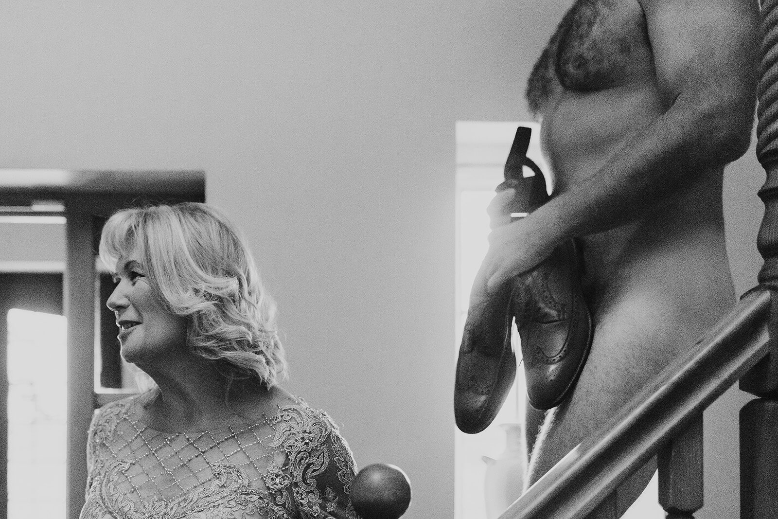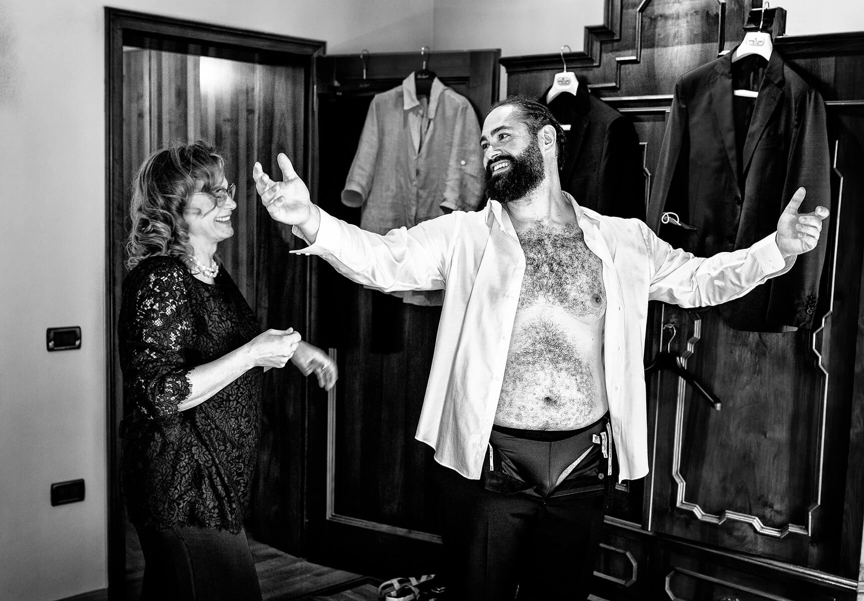 “This was taken during groom prep when the groom decided to walk down stairs in his birthday suit to surprise his mum”