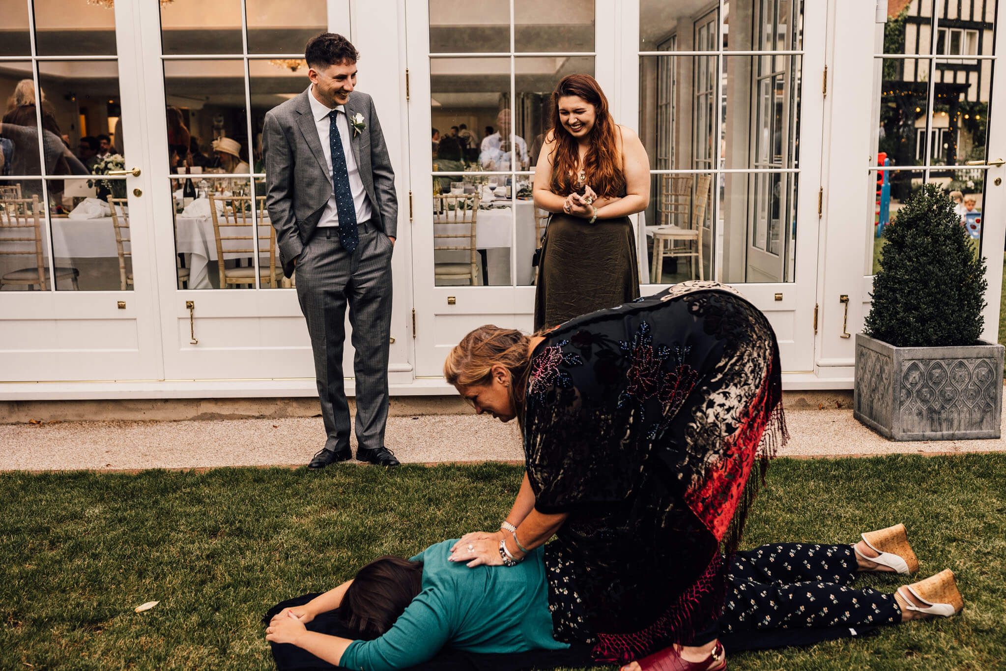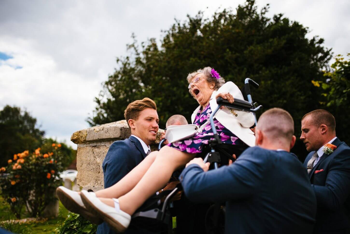 “This is one of my all time favourite photos.. The bride and groom wanted the church in the background of the group shots and the only way was through a small gate and onto the field next to the church, the gate was too small so grandma had to be lifted over…”